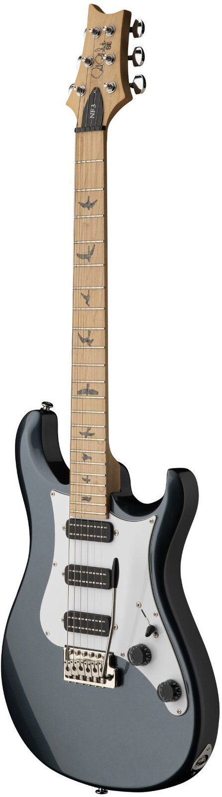 The PRS SE NF3 is a distinct guitar in the PRS lineup. The heart of this guitar is a trio of PRS Narrowfield pickups, a first for the SE Series. Supporting these pickups is a poplar body, 22-fret bolt-on maple neck, and a maple fretboard. The SE NF3 is a versatile workhorse guitar that is fun to play and hard to put down. The Narrowfield DD (Deep Dish) “S” pickups are made with taller bobbins to fit more winds and extra metal pieces in between the magnets for a more focused, powerful tone. Anchored with PRS’s patented tremolo, this guitar can bend and flutter with ease.