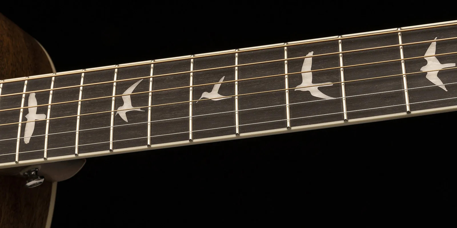 Other high-quality features include a solid mahogany top, ebony fretboard and bridge, bone nut and saddle, as well as PRS trademark bird inlays and headstock design. PRS SE Parlor acoustics come with a gig bag and are strung with 12-53 strings.
