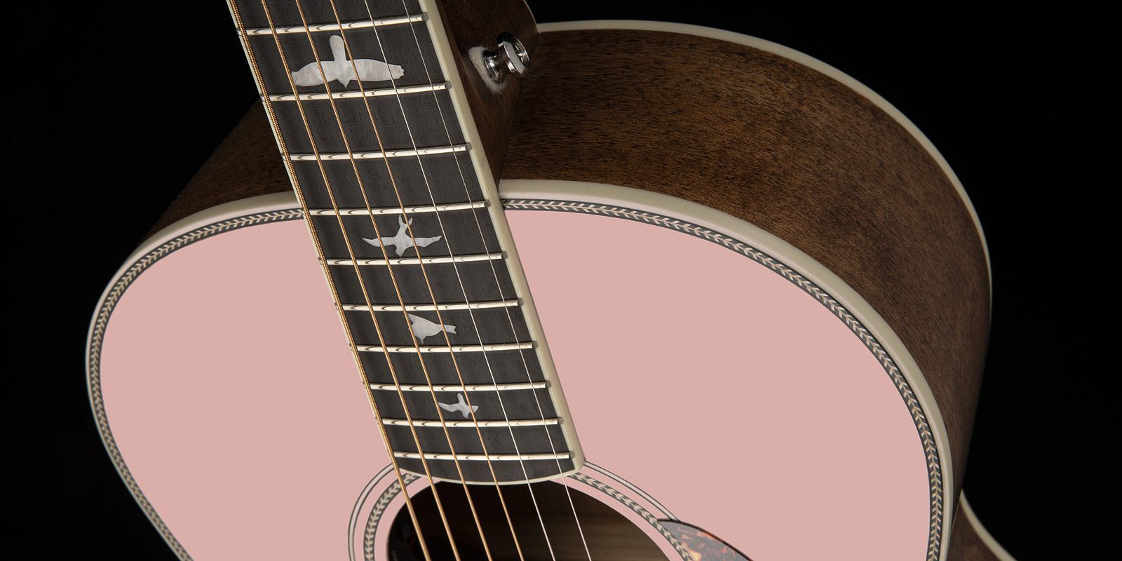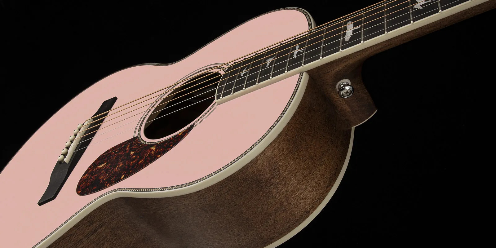 This limited edition PRS SE parlor acoustic adds a fresh look to the popular Parlor acoustic model with a Lotus Pink solid-mahogany top.