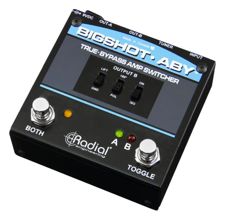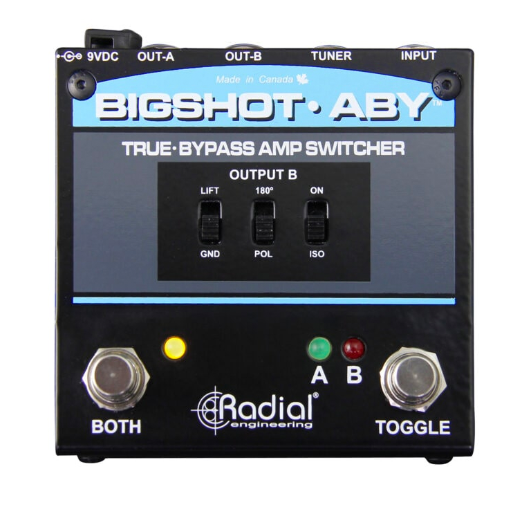 The BigShot ABY™ is a compact true-bypass ABY switcher that enables you to switch between two amplifiers or play through both amps at the same time, while eliminating buzz and hum from ground loops.