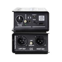 The BT-Pro V2 is a Bluetooth-enabled direct box that connects wirelessly to smartphones, tablets, and other mobile devices and provides a pair of balanced analog audio outputs to feed a PA system. Each BT-Pro V2 has a unique identifier, allowing multiple units to be used within the same building. The latest model of the BT-Pro can also be powered via 48V phantom from a mixing console.