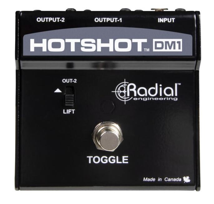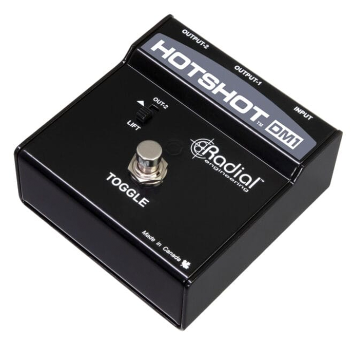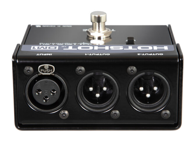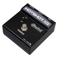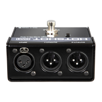 The HotShot DM-1™ is a dynamic microphone switcher with a momentary toggle footswitch, allowing an artist on stage to redirect a vocal mic to feed the stage monitoring system and communicate with band members or technicians.