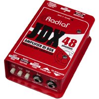 The JDX 48 makes it easy to get a consistent and natural amplifier tone through the PA system night after night, by taking a feed directly from your amplifier and employing Radial's popular JDX speaker emulation that produces an effect similar to placing a dynamic microphone in front of a 4x12 half stack cabinet. This gives you a more manageable sound onstage for gigs where feedback is an issue, or if mic'ing your amp isn't an option. For artists that employ in-ear monitoring systems, the JDX 48 provides consistent tone each night in the monitor mix for shorter setup times and a more comfortable audio feed for the artist.