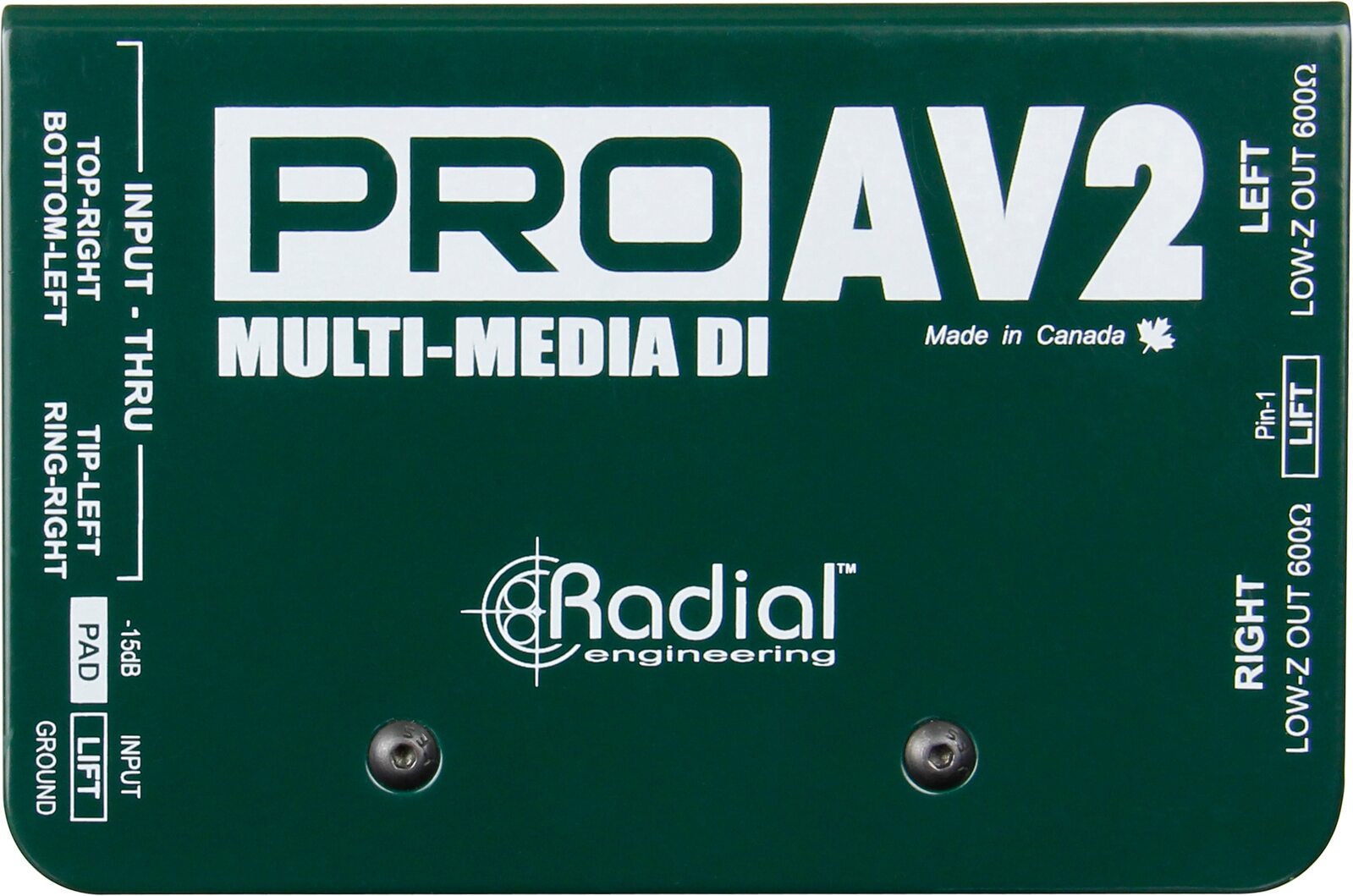 The ProAV2 is a stereo passive direct box designed for audio-video integrators and technicians, with an array of input connector options to easily interface with a wide range of audio equipment.