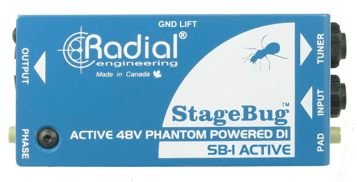 The StageBug SB-1 is a compact active direct box designed to fit inside a guitar case for artists who prefer to travel light.