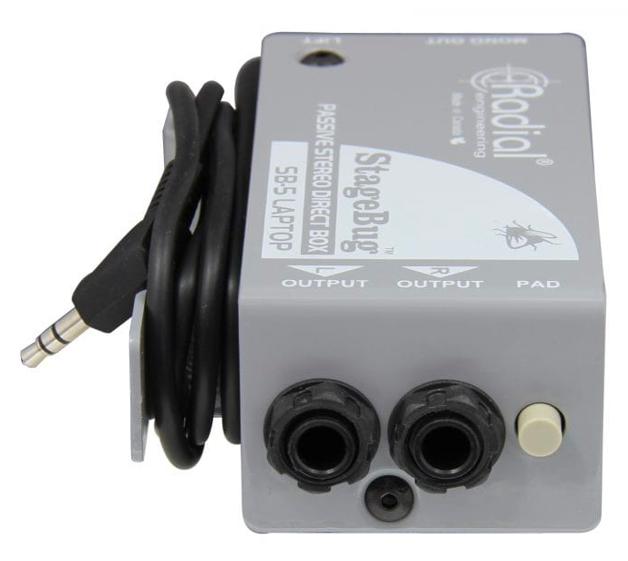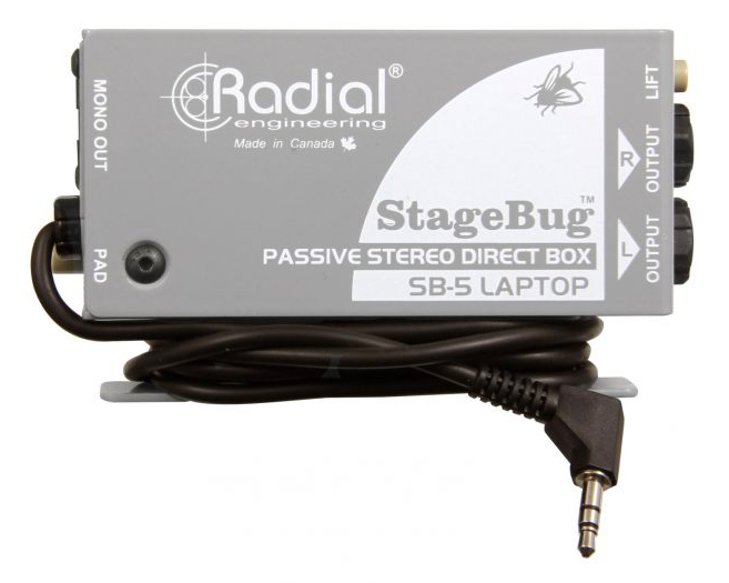 The Radial StageBug SB-5 is a compact & portable stereo direct box designed to accommodate laptop computers, tablets, and other consumer audio products when amplifying the signal through a PA system.