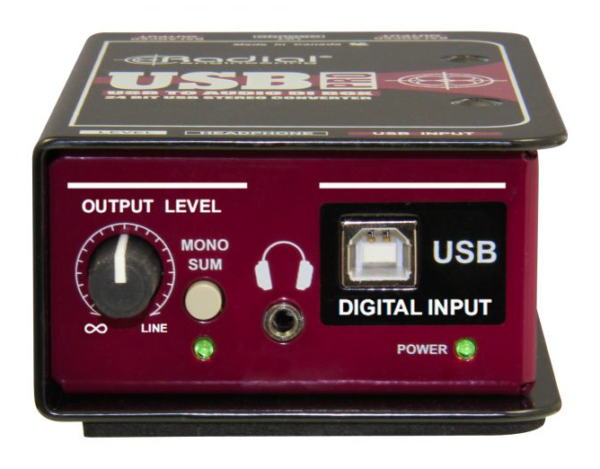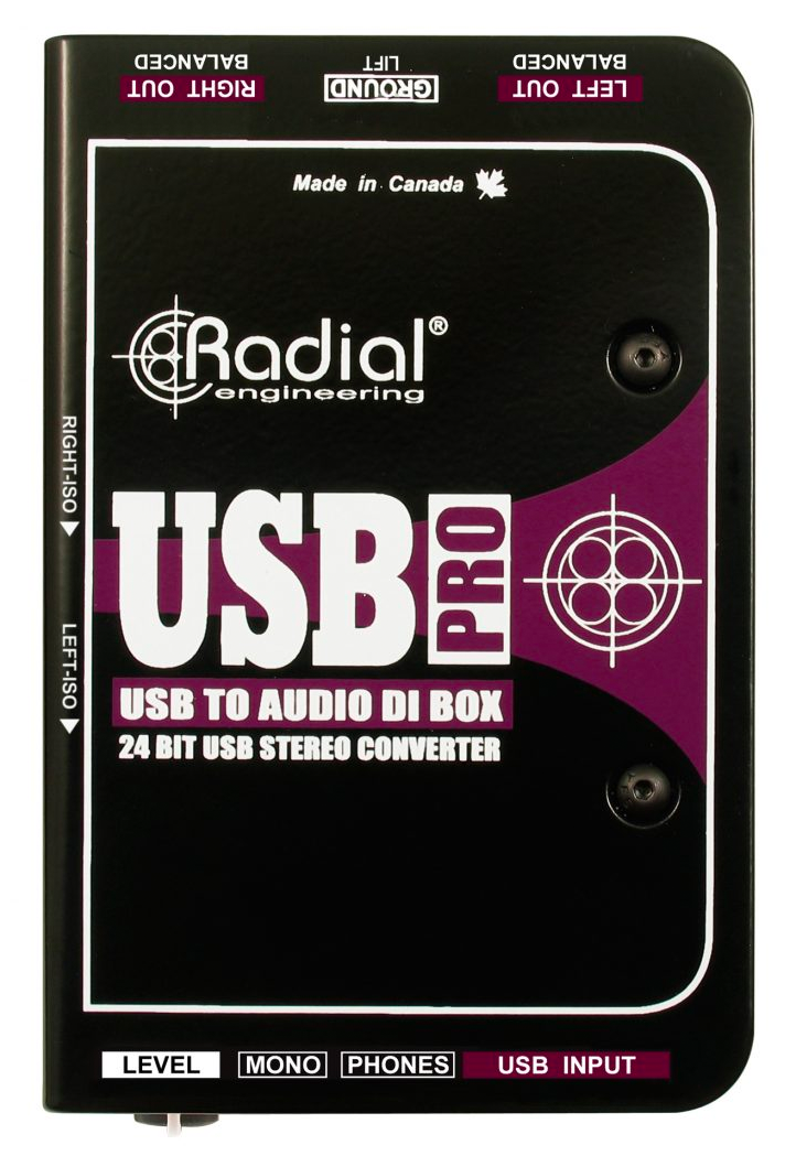 The USB-Pro™ is a high-resolution stereo digital audio converter and direct box that is designed to connect to any computer and seamlessly convert digital audio tracks to a pair of balanced analog outputs.