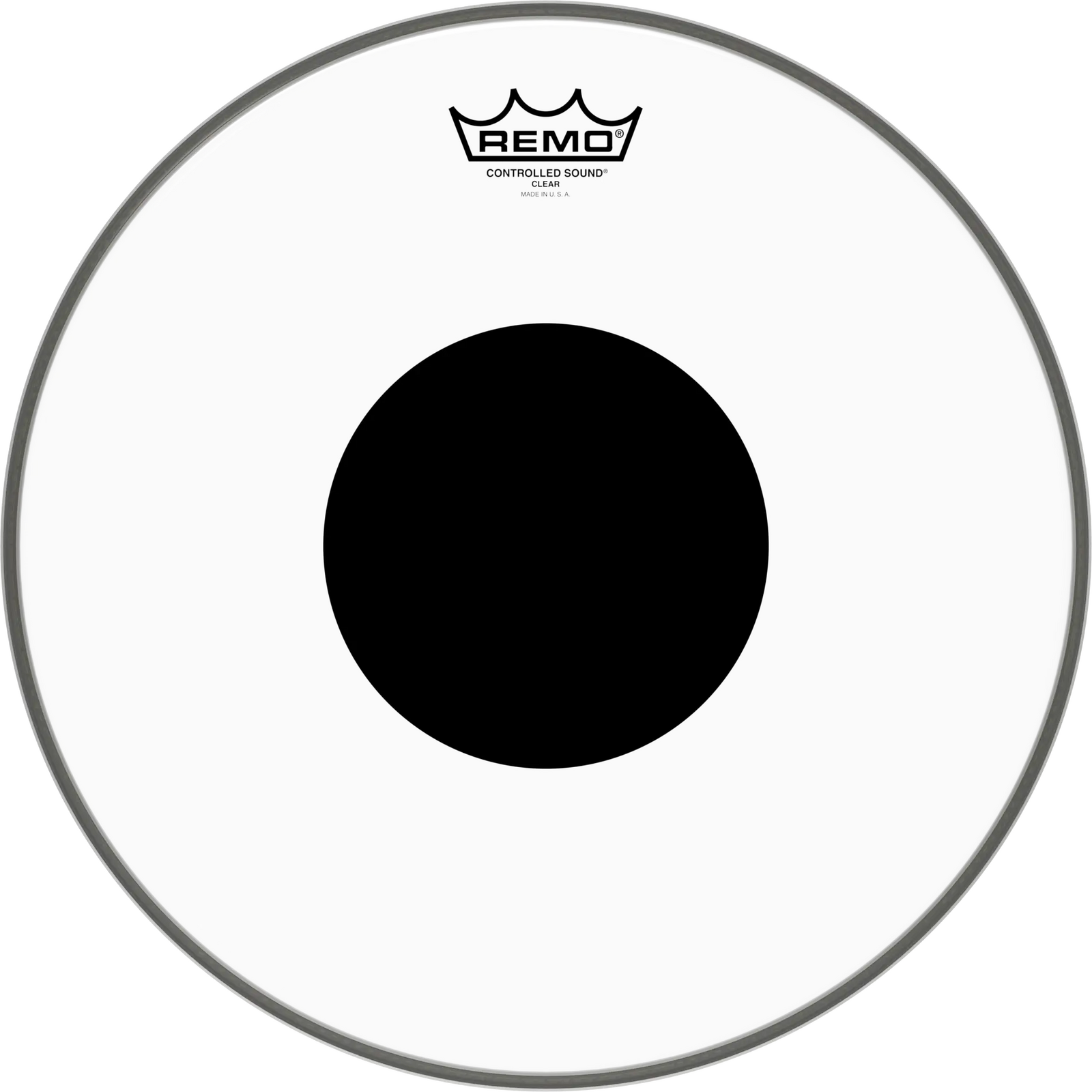 The Controlled Sound® Clear Top Black Dot™ drumheads features focused midrange tones with a well-defined attack. Constructed with 1-ply of 10-mil Clear film and a 5-mil Top Black Dot, Controlled Sound Clear Black Dot drumheads provide articulate attack and projection with added durability. The drumhead's outer area offers enhanced tone and sensitivity while the center Black Dot adds durability and overtone control.