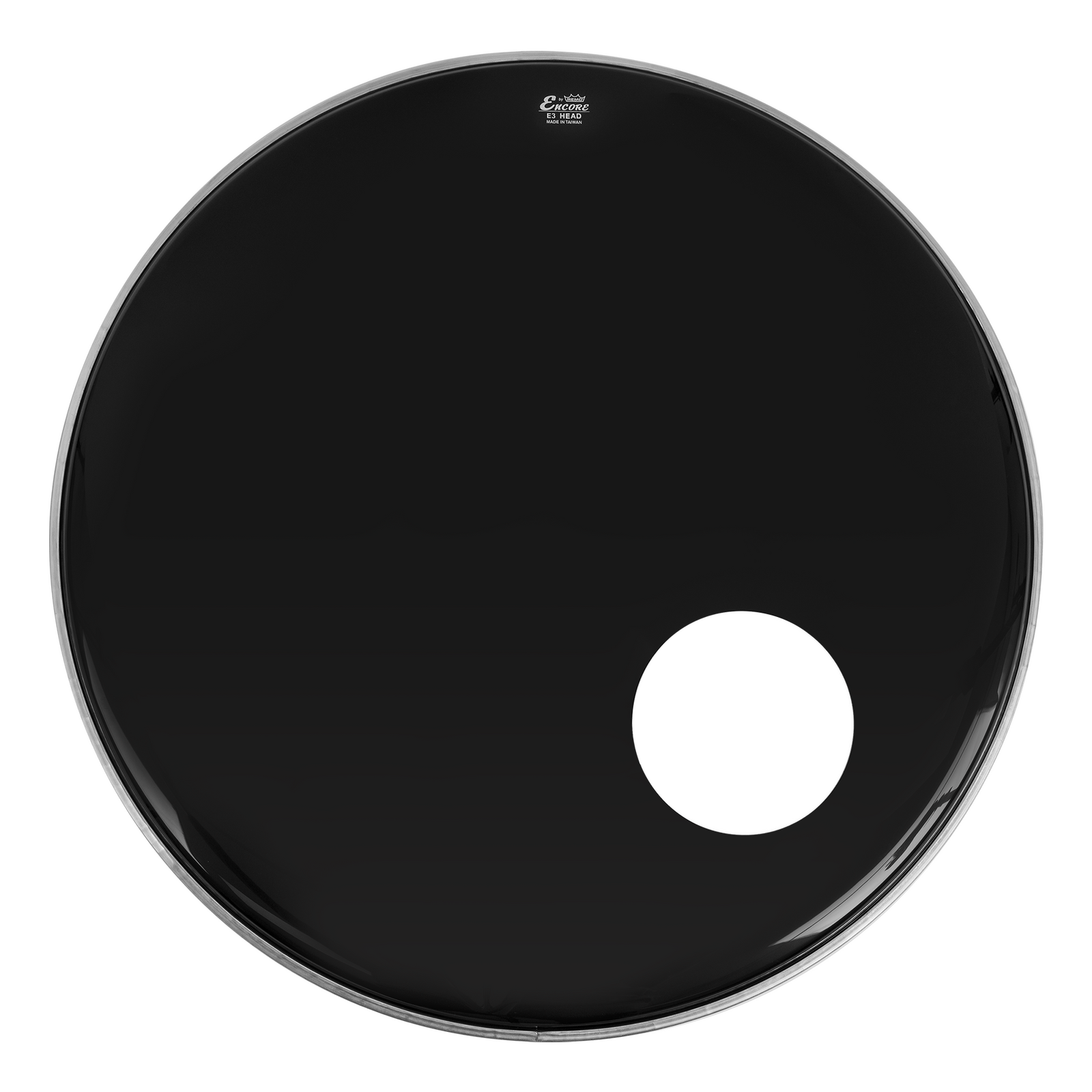 Remo Encore Powerstroke® 3 Ebony bass drum head with 5" offset hole.