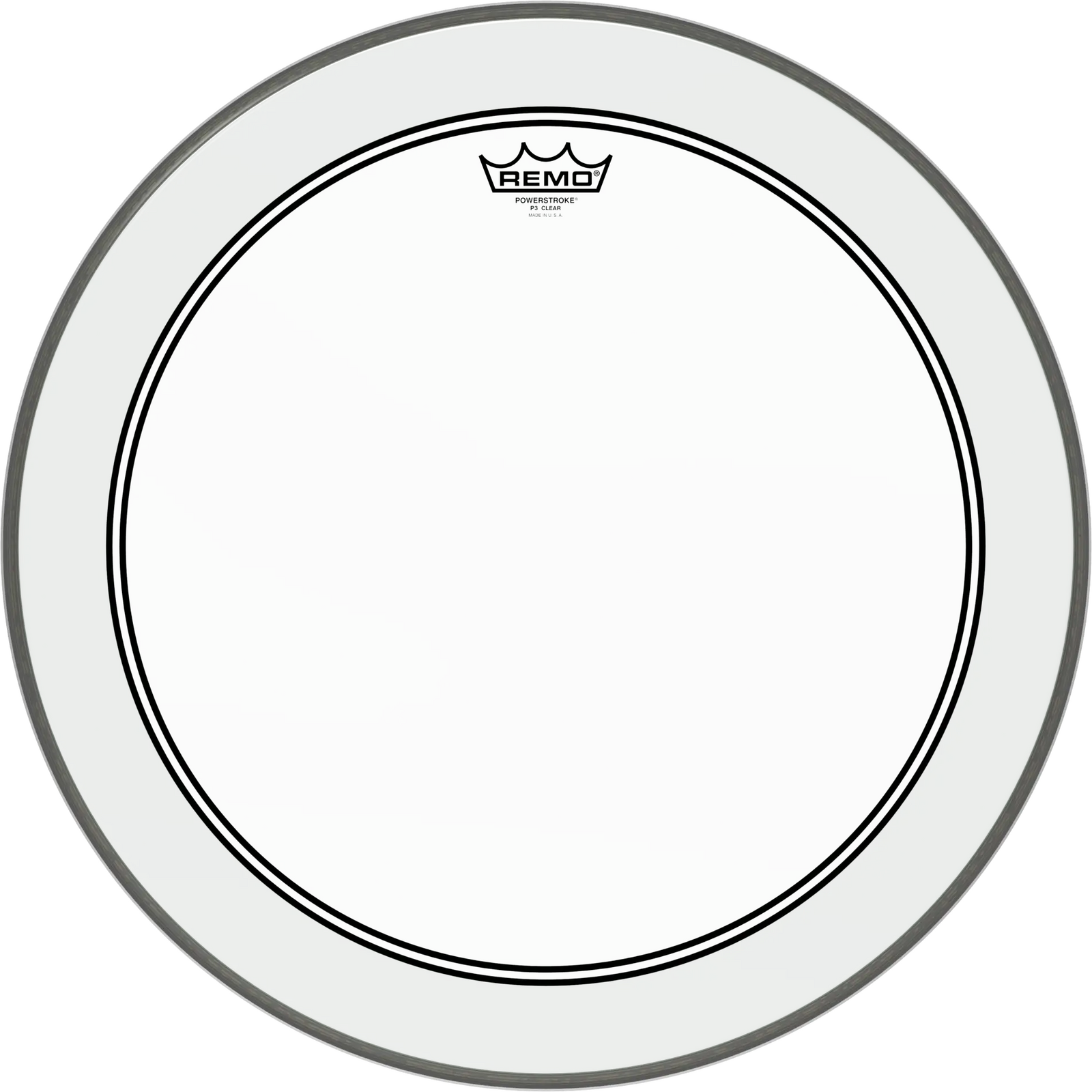 The Powerstroke® 3 Clear features focused mid and low tones with a well-defined attack. Constructed 1-ply 10-mil Clear film with a 3-mil inlay ring for Toms and Snares and a 10-mil inlay ring for Bass drumheads, Powerstroke 3 Clear provides a perfect balance of response and tone control.