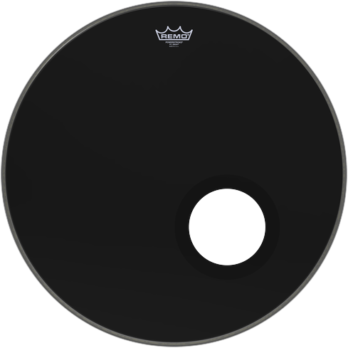 The Powerstroke® P3 Ebony® 5" Black DynamO features midrange and low-end resonant tones with a pre-cut 5" hole with a DynamO reinforcement ring installed. Constructed with 1-ply 10-mil Ebony film with a 10-mil inlay ring and 5" Black DynamO, the Powerstroke P3 Ebony drumhead provides a perfect balance of mid and low tones that has made Powerstroke Ebony of Remo's most popular resonant Bass drumheads.