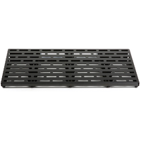 Made from a single sheet of cold-rolled aluminum, the ingenious, lightweight, stiff and rugged construction features vertical support struts for added stability and has not a single welded seam. The result is a completely flat and torsion-resistant surface that can be used edge-to-edge. The innovative slot design allows all cables to be conveniently and neatly routed under the board's surface. The precisely defined slot pattern provides a perfect fit for our innovative QuickMount system, which eliminates the need for hook & loop tape. Almost all common power supplies can be mounted on the underside. A sturdy Flight Case is included for safe transportation.