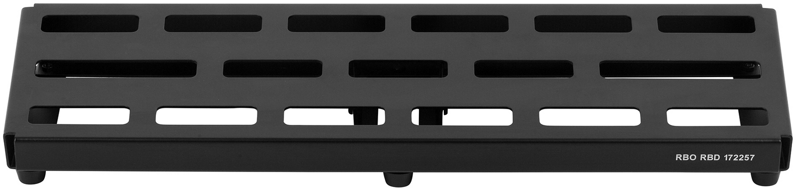 Made from a single sheet of cold-rolled aluminum, the ingenious, lightweight, stiff and rugged construction features vertical support struts for added stability and has not a single welded seam. The result is a completely flat and torsion-resistant surface that can be used edge-to-edge. The innovative slot design allows all cables to be conveniently and neatly routed under the board's surface. The precisely defined slot pattern provides a perfect fit for our innovative QuickMount system, which eliminates the need for hook & loop tape. Almost all common power supplies can be mounted on the underside. A sturdy Flight Case is included for safe transportation.