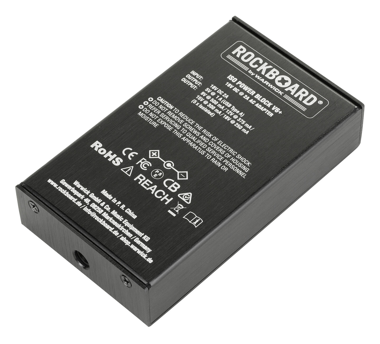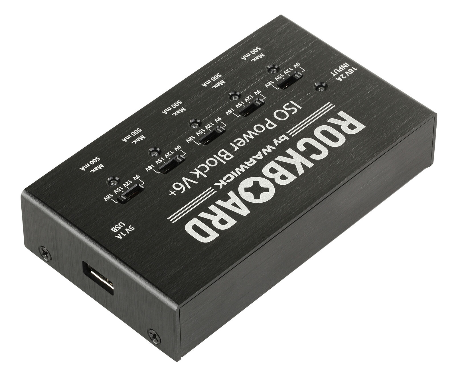 The ISO Power Blocks 6, 6+, 10 and 16 are multi-power supplies for effect pedals and provide up to 16 electrically isolated, highly filtered power connections and a 5V USB connection. The multi-power supply is designed to provide noiseless power to up to 16 effects pedals simultaneously, even with different operating voltages.