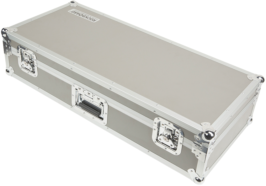Made from a single sheet of cold-rolled aluminum, the ingenious, lightweight, stiff and rugged construction features vertical support struts for added stability and has not a single welded seam. The result is a completely flat and torsion-resistant surface that can be used edge-to-edge. The innovative slot design allows all cables to be conveniently and neatly routed under the board's surface. The precisely defined slot pattern provides a perfect fit for our innovative QuickMount system, which eliminates the need for hook & loop tape. Almost all common power supplies can be mounted on the underside. A sturdy Flight Case is included for safe transportation.