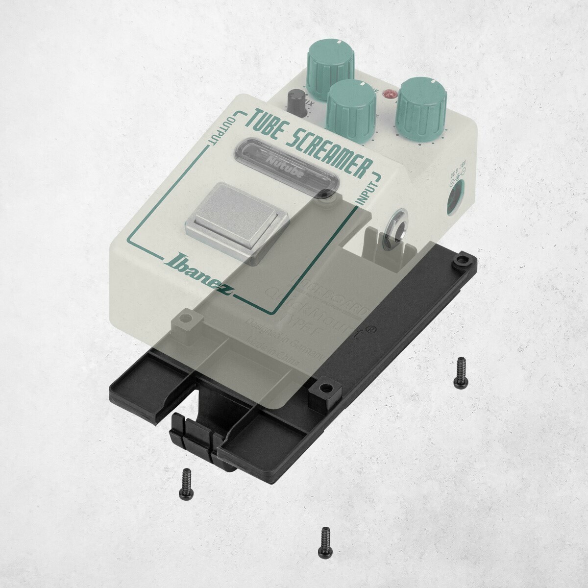 QuickMount Pedal Mounting Plate for standard size Ibanez Tube Screamer and Maxon Nine series effects pedals