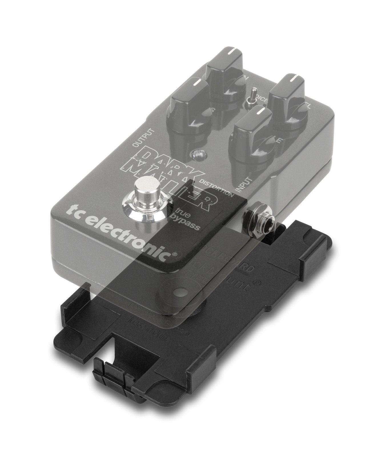 The QuickMount Type G mounting plate is designed to fit TC Electronic effect pedals in the familiar standard format with jacks on the sides as well as effect pedals with the same format from other manufacturers.