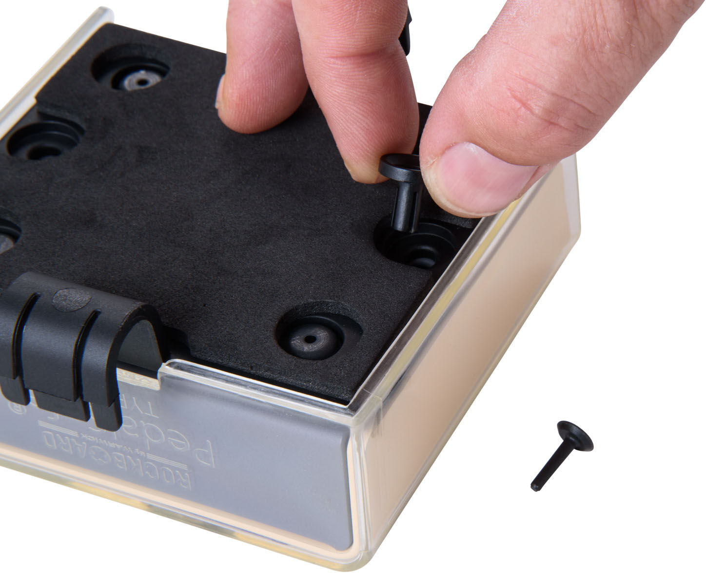 The RockBoard QuickMount System was designed to do away with sticky hook and loop tape that attracts dust and dirt and is a hassle to remove from your pedals. It fits perfectly in the RockBoard Slot Grid on our pedalboards and allows instant secure mounting of your pedals. The QuickMount plates are designed to screw onto the back of your pedals, using the original screws (or supplied replacement screws) and to be easily removable without any residue. Most RockBoard QuickMount Pedal Mounting Plates will fit a variety of different pedals.