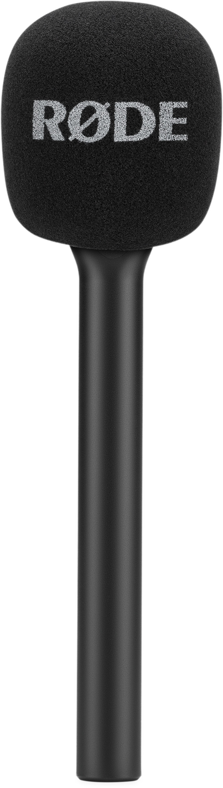 The RØDE Interview GO is a handy adaptor that converts the Wireless GO transmitter into a compact handheld microphone for reporting to-camera or interviewing in the field. It features a sturdy attachment for the Wireless GO’s cold shoe clip to secure the mic in place, plus a high-density windshield for reducing plosives and protecting the capsule from wind when recording outdoors.