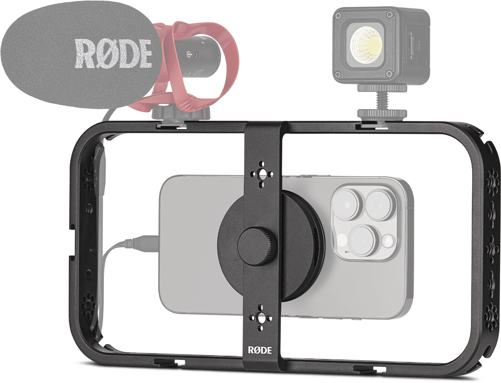 Transform your smartphone into a professional filmmaking rig and elevate your creative content with pristine audio, pro lighting and other hand-holding or mounting options.