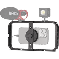Turn your smartphone into a professional filmmaking rig with the Phone Cage. Featuring an ultra-secure mounting system for attaching a MagSafe® iPhone® or other smartphone with a MagSafe-compatible case, cable management slots, five cold shoe mounts for attaching microphones and lights, and a wide array of 1/4-inch and 3/8-inch threads for use with tripods, handles and other accessories, it is the perfect solution for elevating your smartphone content.
