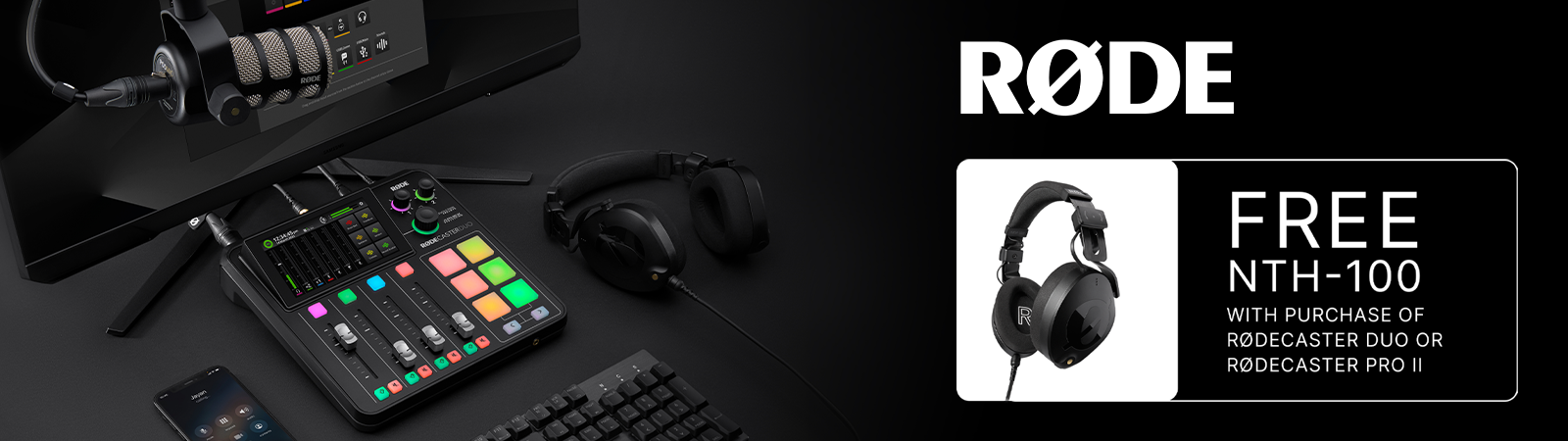From now until June 28th purchase a RØDE RØDECaster Duo or RØDECaster Pro II podcasting studio and complete your podcasting rig with a free pair of NTH-100 professional over-ear headphones. Available for a limited time only, only while stocks last.