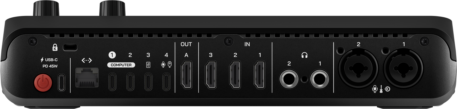 Three HD (1080p) HDMI inputs, one configurable HDMI output, and one multi-function USB-C port for connecting webcams and RØDE USB audio devices