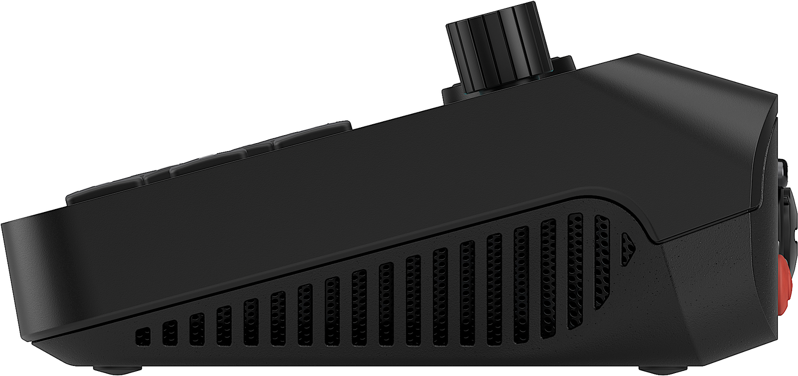 Media playback, keying, transitions, multi-source scenes and graphic overlays accessible from the front panel