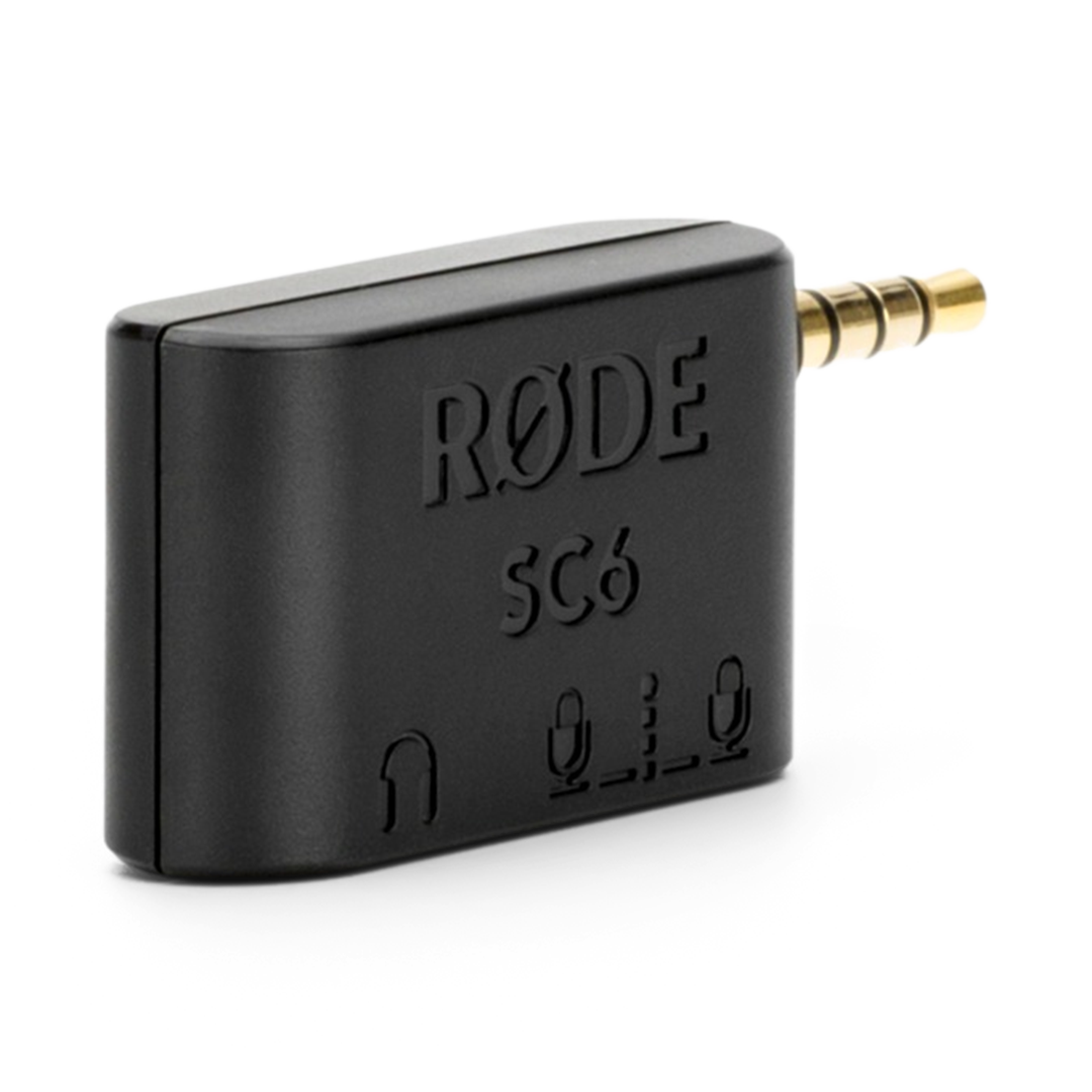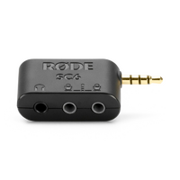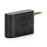 The RØDE SC6 is a dual TRRS adaptor for smartphones and tablets. With two TRRS inputs and one stereo headphone output, the SC6 connects to any TRRS device and allows the use of one or two smartLav or smartLav+ microphones, as well as headphones for monitoring and playback.