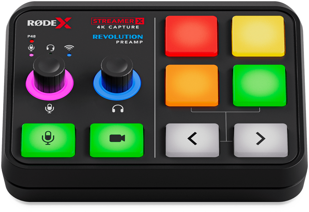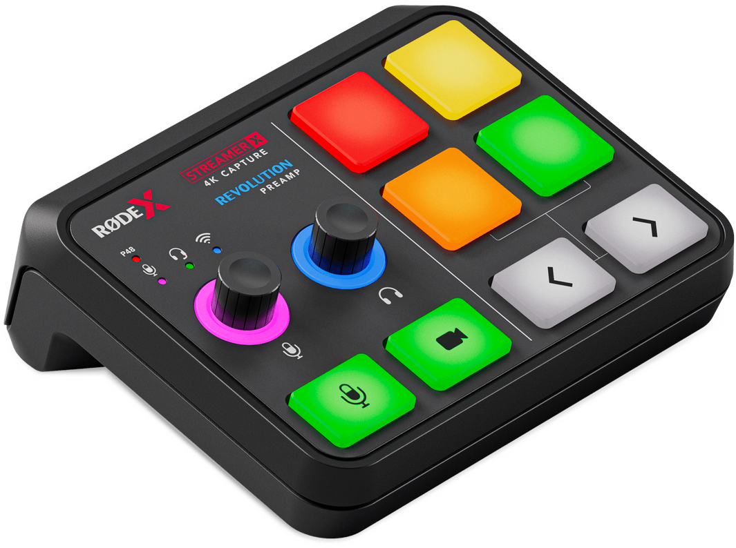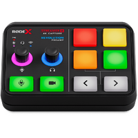 The Streamer X is a professional video capture card, audio interface and control surface integrated in one compact device that makes creating incredible content incredibly easy. It features studio-grade audio inputs for XLR microphones and instruments, headsets and RØDE wireless microphones, with an ultra-low-noise, high-gain Revolution Preamp™ and powerful APHEX® audio processing delivering pristine sound quality. HDMI connections offer up to 4K30 streaming and 4K60 pass-through for incredible video quality in a wide range of applications, from streaming and gaming, to podcasting and content creation, to business presentations. Dual USB-C connections seamlessly accommodate dual PC setups, and four fully customisable SMART pads allow for on-the-fly triggering of sound or voice FX and other actions on a computer. The ultimate all-in-one streaming solution.