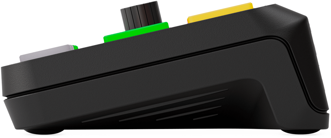 The Streamer X offers loads of direct control over your stream, with dedicated encoders and buttons for input and output levels, mutes and input switching. It also features four fully customisable SMART pads, with up to 64 accessible via bank switching. These can be configured to trigger audio playback, add voice FX, and even send MIDI messages to your computer, allowing you to trigger any keyboard shortcut with a single press of a pad – super useful for everything from changing slides on a presentation to switching scenes in your streaming software.