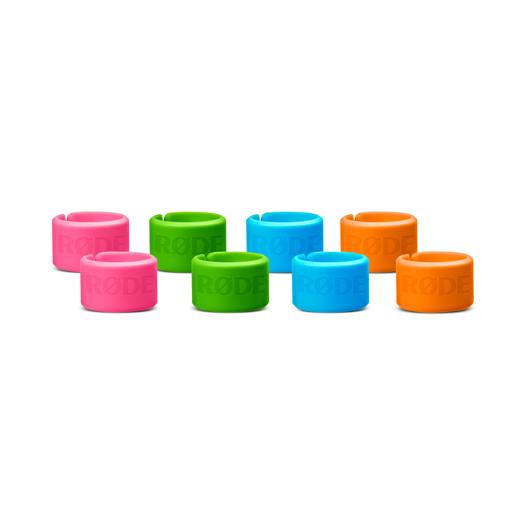 The RØDE XLR-ID is a set of eight colour-coded rings that can be affixed to any XLR plug to assist with cable identification. The colours of the rings match the colours used for each of the microphone channels on the RØDECaster Pro.