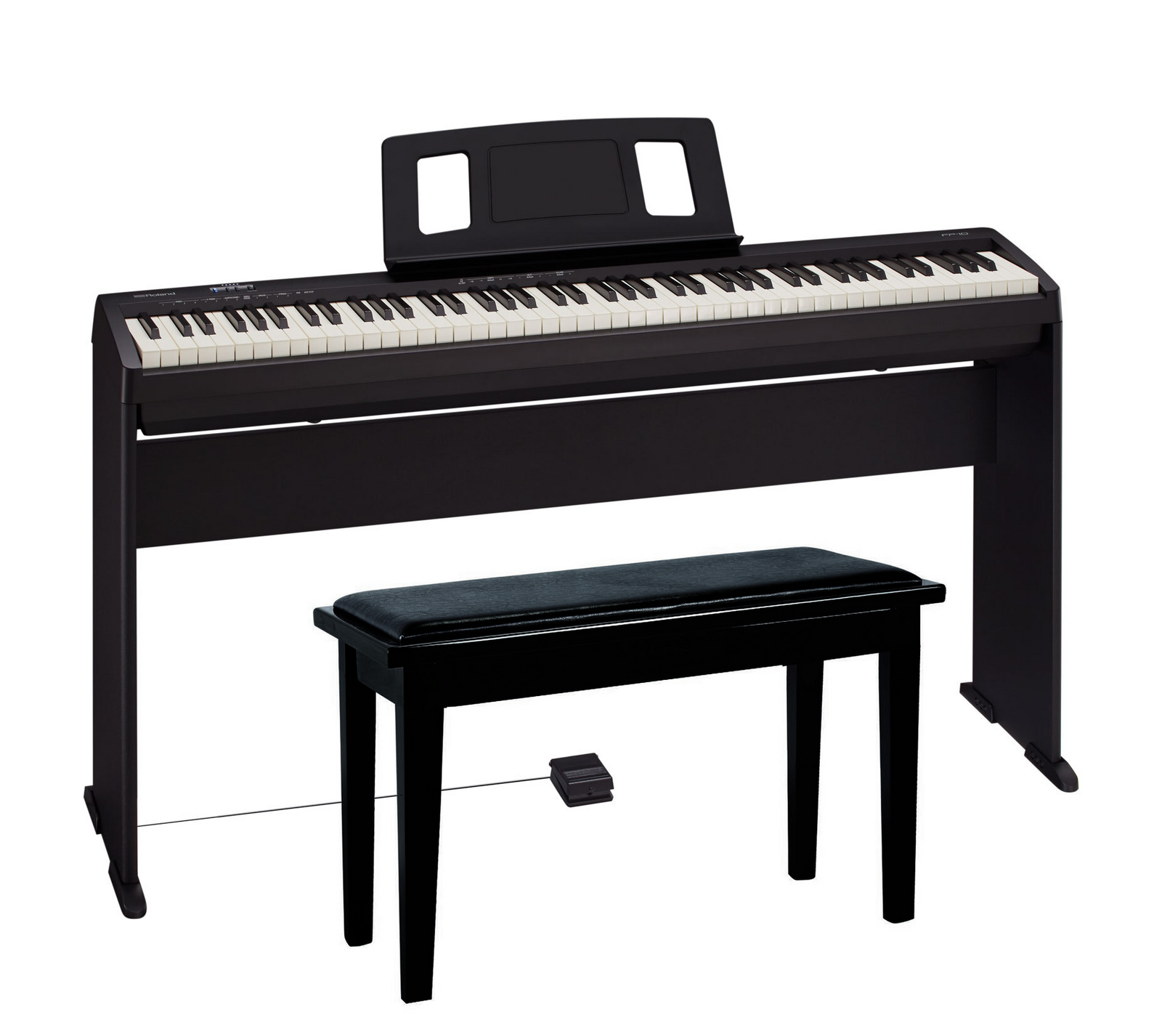This convenient one click bundle includes a Roland FP-10 Digital Piano, a Roland KSCFP10 Piano Stand, and a Piano Bench.