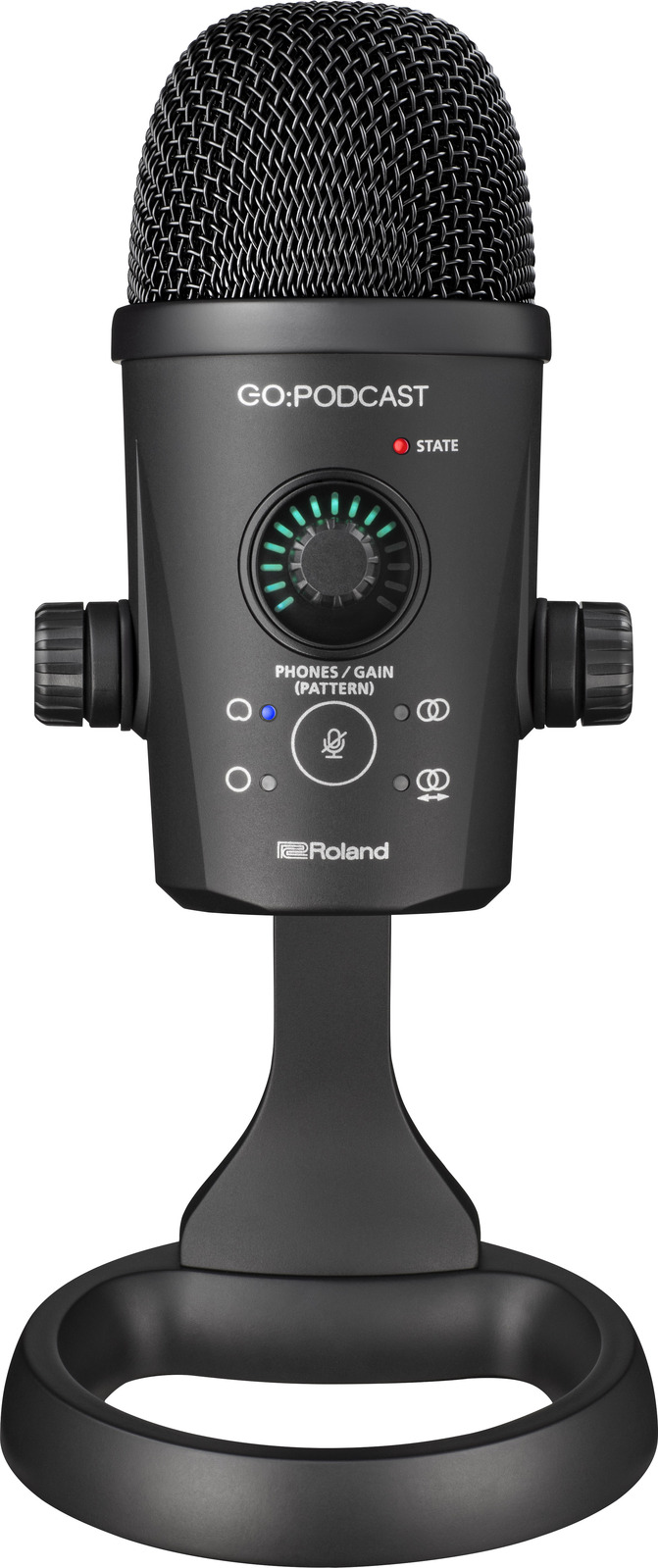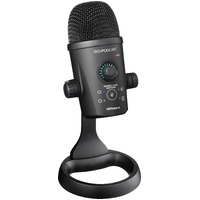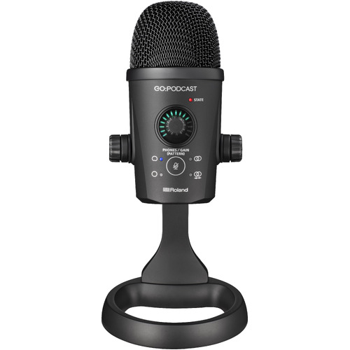 Even if your video looks great, viewers will quickly tune out if the audio is subpar. The GO:PODCAST microphone features a full-range condenser design, allowing you to capture voices and other sources with clear, warm, and articulate sound. There’s a convenient dual-function volume knob for the mic and headphone jack, plus an audio meter for setting optimum levels. The built-in stand provides easy desk positioning and a stable, isolated platform that helps keep the sound free of low-frequency rumble.
