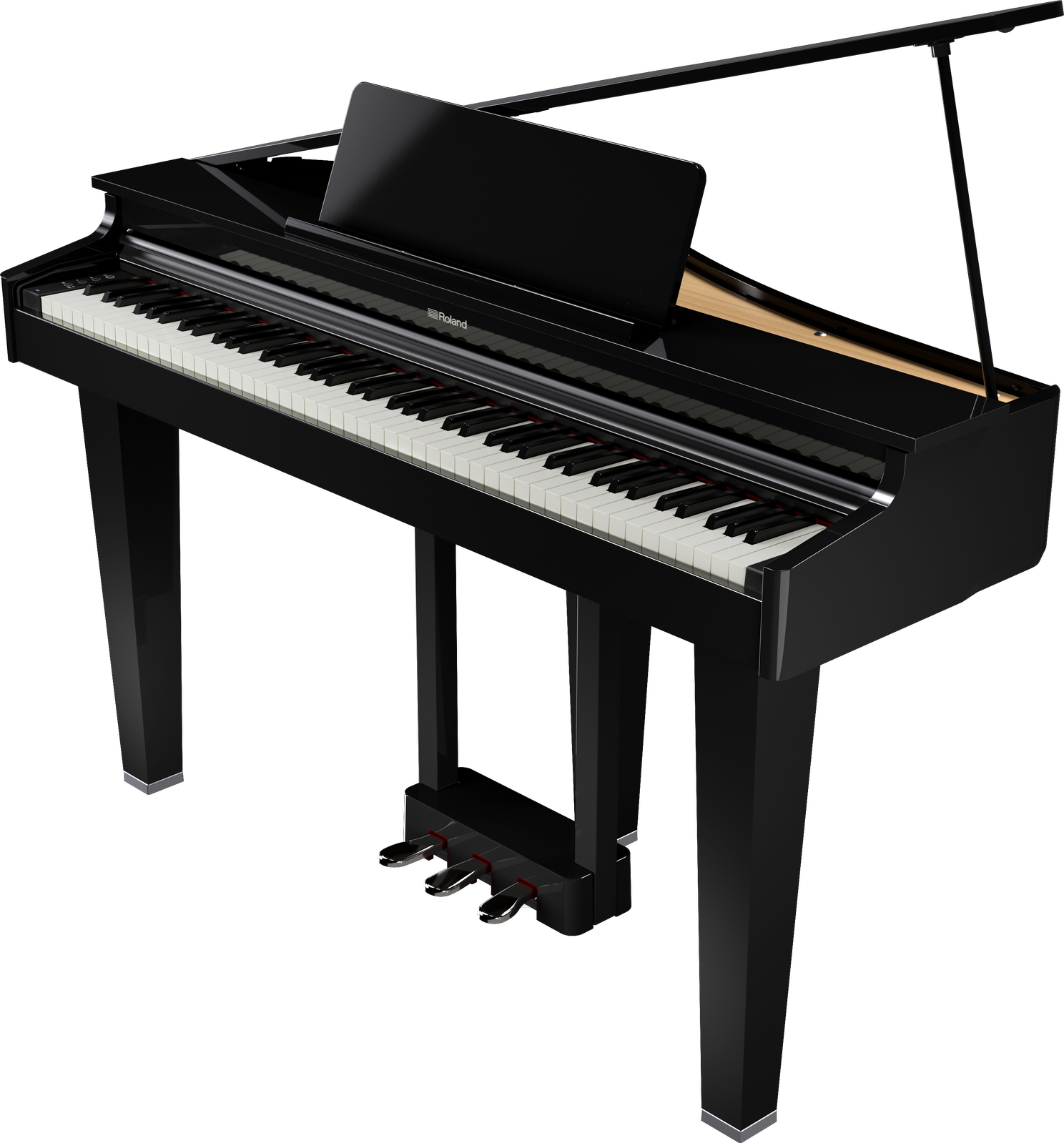 Low-profile grand piano with a space-saving footprint, elegant details, and premium Roland piano technologies.