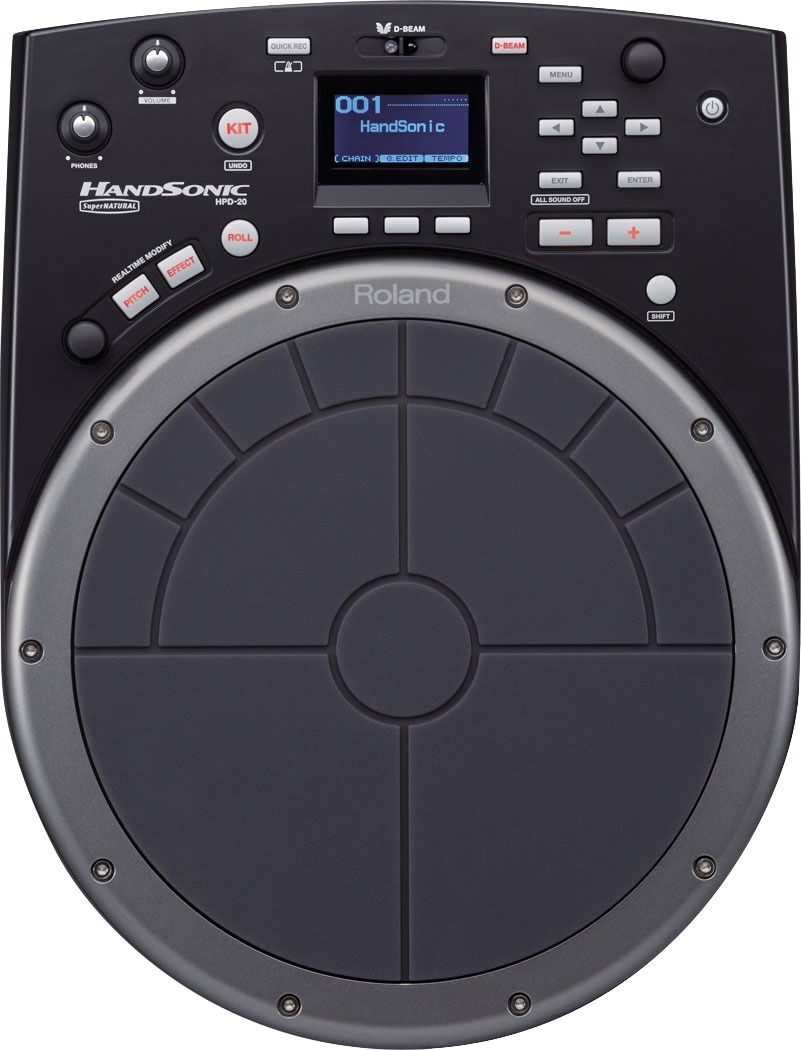 Roland takes digital hand percussion to a new dimension with the HandSonic HPD-20, a unique and versatile instrument that’s ideal for a wide range of music creators, from percussionists and drummers to electronic dance music performers, composers, and producers. Equipped with the renowned SuperNATURAL sound engine and potent multi-effects, the HPD-20 offers 850 dynamic, ready-to-play sounds, plus the ability to import your own custom sounds via USB flash memory. 13 pads provide ultra-sensitive response and flexible control options for playing onboard sounds and external MIDI instruments with an incredible range of expression. The HandSonic pad interface also excels in computer music applications, where it’s perfect for playing virtual instruments, recording MIDI and audio performances in DAW software, and much more. And with its convenient trigger inputs, you can easily expand the HPD-20 with a Roland pad and hi-hat controller to build a super-compact percussion set.