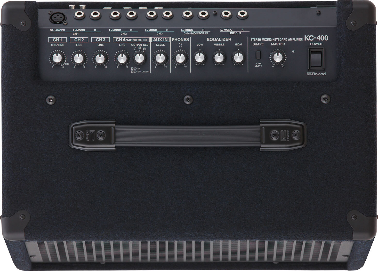The KC-400 offers powerful, punchy sound and full-range audio reproduction in a compact amp with 150 watts of power. The cabinet features Roland’s patented twin bass-reflex design, providing extended low-frequency response without distortion. Paired with the newly redesigned power section, the KC-400 delivers even better bass performance for amplifying 88-note stage pianos, organs, and synthesizers, plus rhythm machines and other electronic instruments. An added benefit of the efficient new power section is reduced weight, making the KC-400 easier to carry from gig to gig.