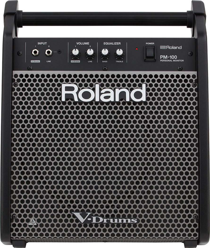The PM-100 is the perfect complement to any V-Drums set. Its compact size is ideal for playing at home, and the powerful custom speaker system delivers rich, full-range sound with inspiring punch and presence. The front face is angled for optimal sound monitoring while seated at the V-Drums, and a full-width bar handle on top offers a convenient way to carry the monitor and adjust its floor position.
