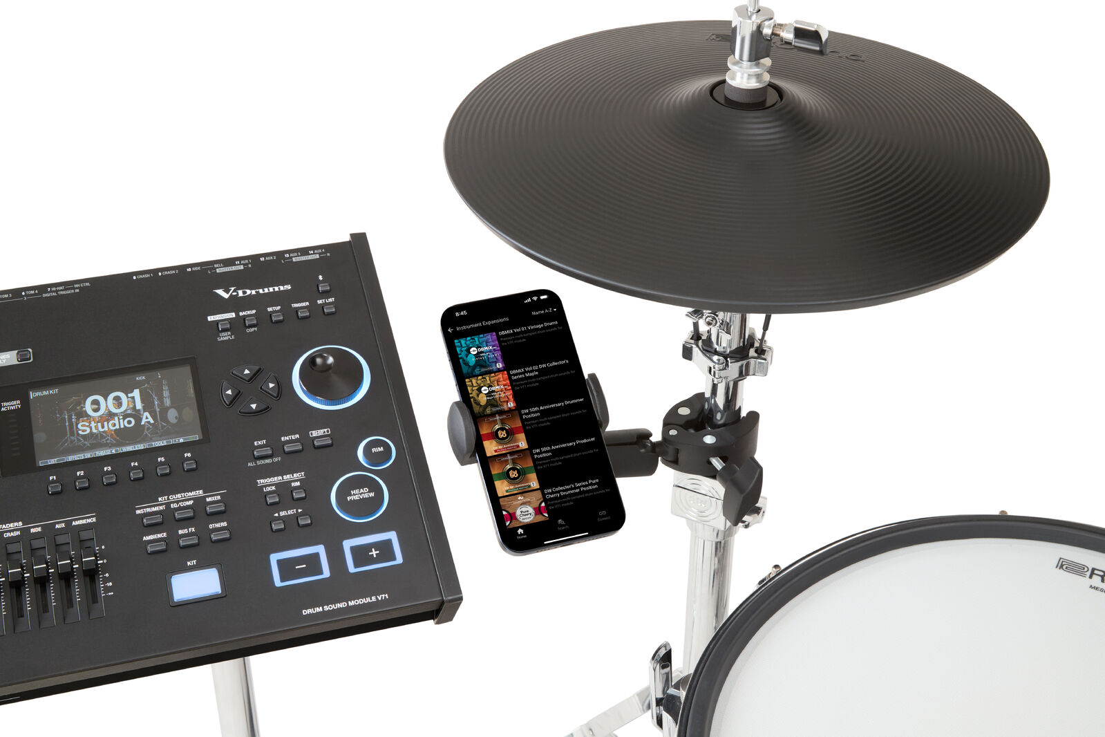 Most of the latest V-Drums modules include Bluetooth, allowing you to wirelessly connect your smartphone and enhance your drumming experience with the V-Drums Play app,* music streaming, video lessons, content updates, and more. The RSH-10 is a rock-solid solution for mounting your smartphone to an accessible location within your kit, offering secure attachment for intense drumming sessions and a highly adjustable design for easy positioning.