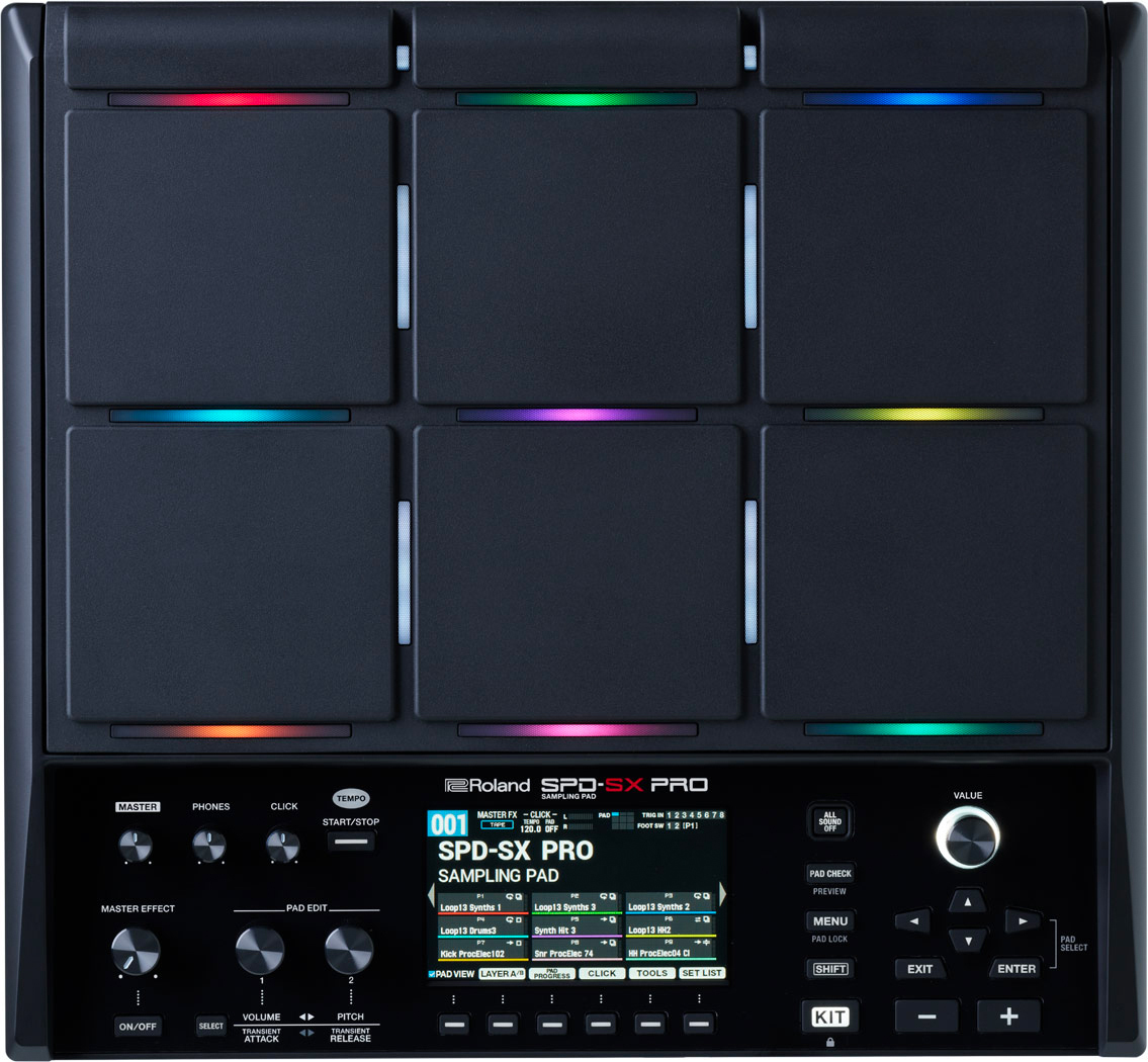 The SPD-SX PRO is the ultimate sampling pad for the most demanding gigs. With years of road testing and extensive user feedback from the SPD-S and SPD-SX, the top-tier SPD-SX PRO raises the bar again. Harnessing the advanced sample pad technology of its predecessors, the SPD-X-PRO boasts an array of requested professional enhancements and is built for life on the road. Illuminate dark stages with a large color display and customizable multi-color trigger lights. Expand your performance setup with more audio outputs, additional trigger inputs, and hi-hat and FX expression pedal control. And go further with a massive 32 GB memory, 48 kHz audio playback, increased pad sensitivity without crosstalk, and a dedicated SPD-SX PRO App for easier kit editing.