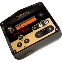 Battery powered and small in size, the TM-2 Trigger Module provides a simple solution for enhancing acoustic drums with the creative versatility of electronic percussion. Two trigger inputs support a wide variety of pads and drum triggers from Roland, while the ready-to-play pro sounds are optimized for augmenting live acoustic drums and extending the percussion capabilities of any drum set. Studio-quality multi-effects are on tap to process your kits, and you can even trigger your own custom WAV sounds, loops, and backing tracks via an SDHC card. By combining the TM-2 with products such as Roland’s BT-1 Bar Trigger Pad, KT-10 Kick Trigger Pedal, or RT-series acoustic drum triggers, it’s never been easier or more affordable to create a powerful hybrid drum kit that blends acoustic and electronic elements together.