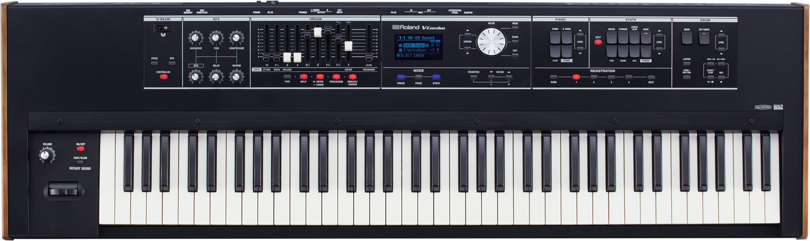 Piano is a cornerstone sound for live playing, and the VR-730 provides a wide selection for covering all musical styles. Many historic electric piano are on board, including a selection derived from the RD-2000. You can also spice up your EPs with vintage effects like phaser, tremolo, touch wah, and tape delay. The gorgeous acoustic grand piano features 88-note stereo multi-sampling, delivering pro-level tone that rivals Roland’s dedicated stage pianos. The VR-730’s easy-access compressor effect works great with the piano sounds, ensuring that your playing always cuts through when performing with loud bands and big ensembles.