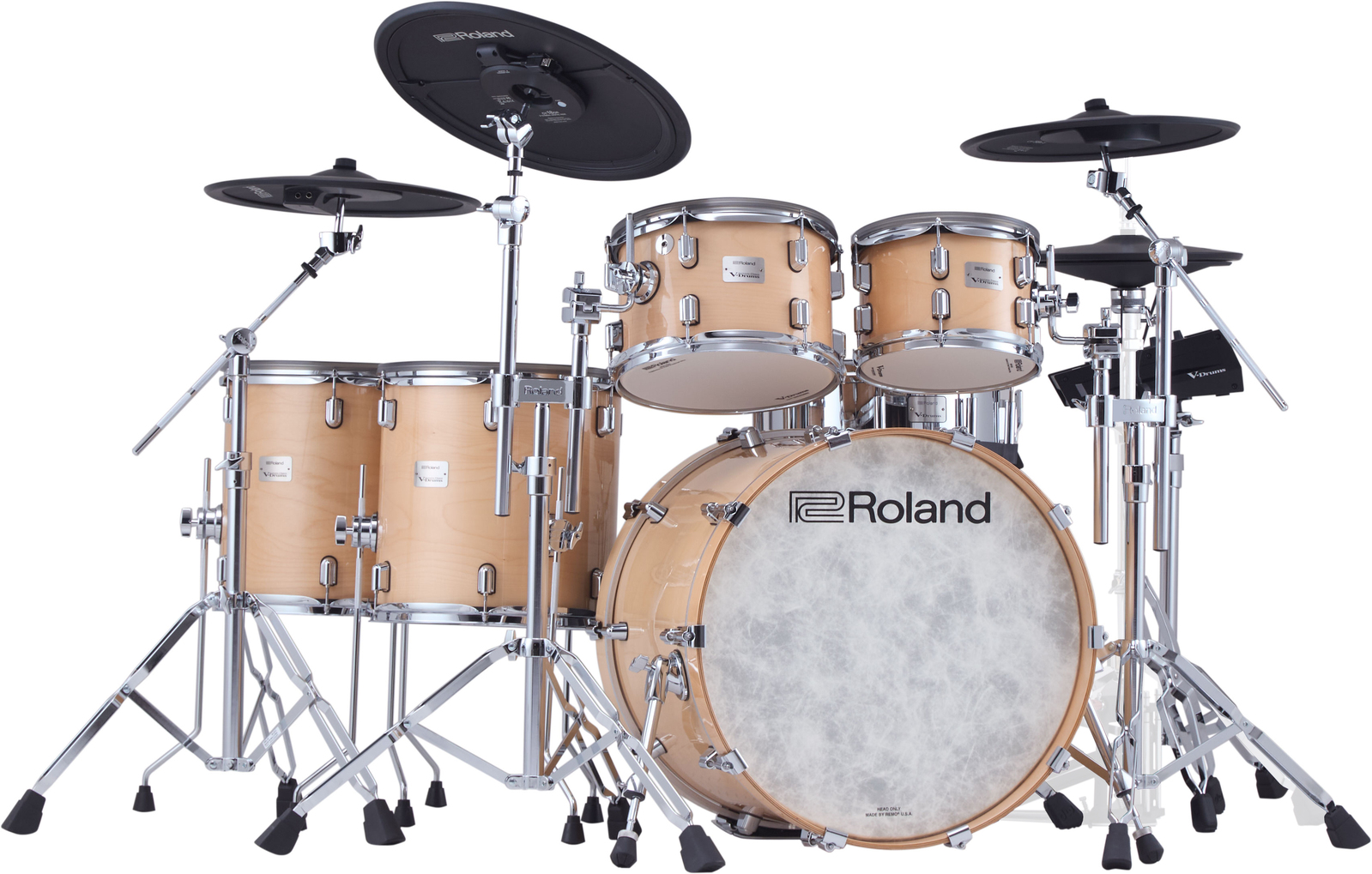 Six-piece V-Drums Acoustic Design kit with full-size wood shells and double-braced chrome stands