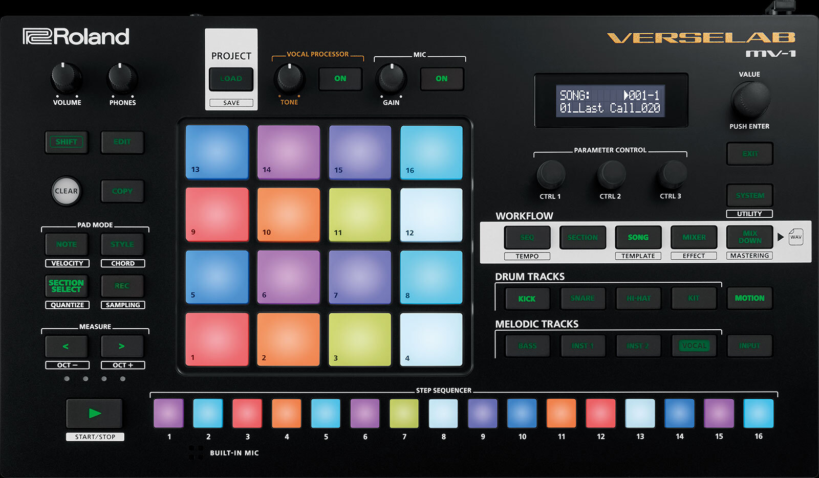 Go beyond the mouse and keyboard with VERSELAB’s inspiring RGB-lit pads and hands-on controls. Combining the TR-REC step sequencer found in legendary Roland drum machines with an ultra-responsive 4x4 pad matrix, you can bang out drum tracks, basslines, and melodic parts as fast as they come to you.