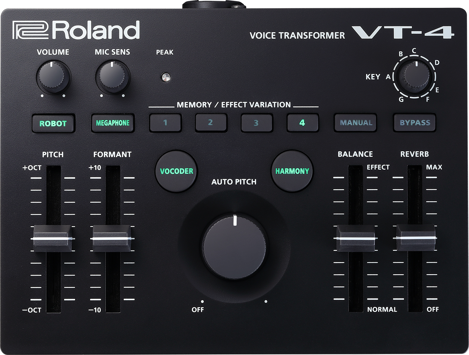 Great-sounding pitch and formant effects are hard to come by, especially without a computer. And real-time tweaking of these effects often results in nasty artifacts and other unpleasantness. With the VT-4 you have totally smooth, instant control over both pitch and formant, with dedicated faders for each. Dramatically change your entire persona from male to female, big to small, or good to evil—the choice is yours.