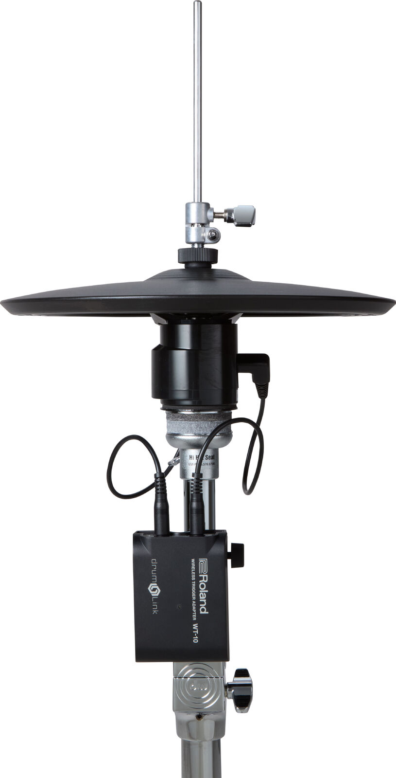 The advanced DrumLink system brings wireless trigger support to V-Drums and other Roland drumming gear. When paired with the companion DH-10 DrumLink Hub, the WT-10 Wireless Trigger Adapter converts a wired pad to wireless triggering, providing lightning-fast response, rock-solid performance, and streamlined connectivity for quicker setup and a cleaner look. The WT-10 also offers an easy way for owners of Drum Workshop’s DWe acoustic-electronic wireless convertible drums to integrate Roland pads within their sets.