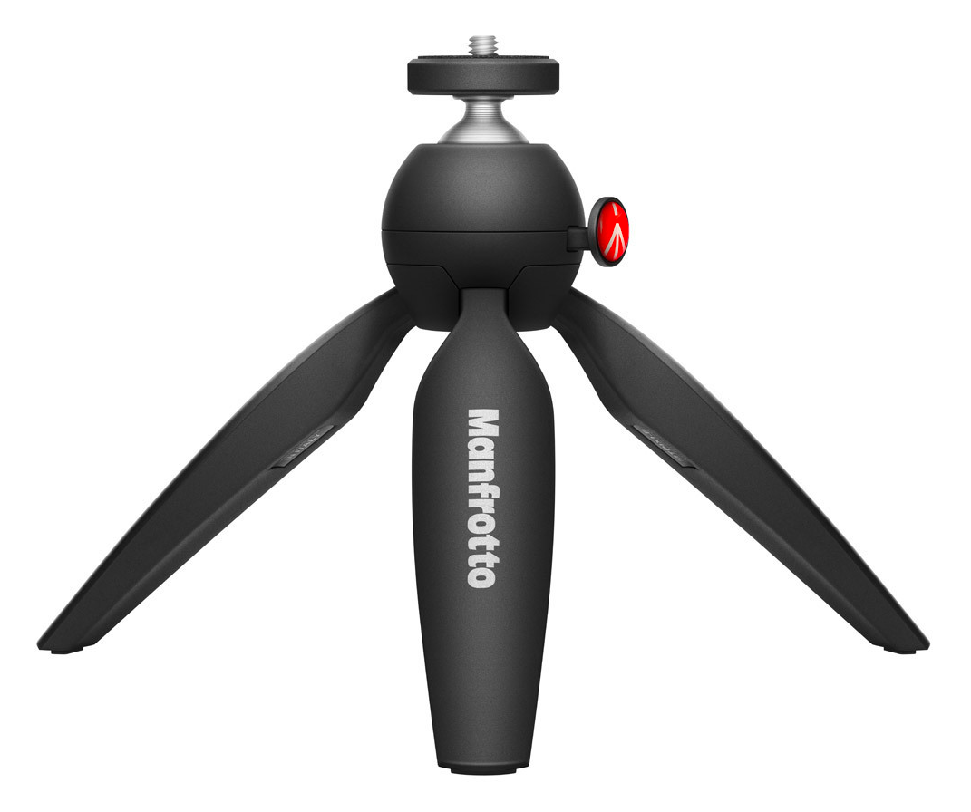 Manfrotto PIXI Mini Tripod features push-button locking ball head for desired placement