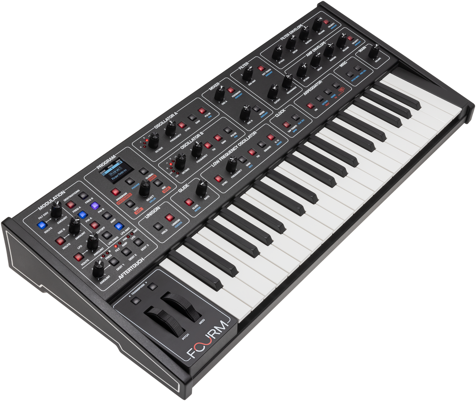 Fourm is a compact analog synthesizer that invites you to play, shape, and perform with unprecedented expression. With its legendary Sequential tone, hands-on modulation, and uniquely responsive keybed, Fourm is a creative partner helping to bring your musical ideas to life.