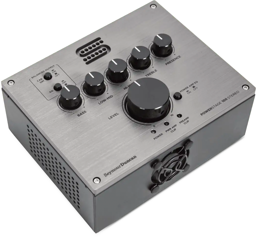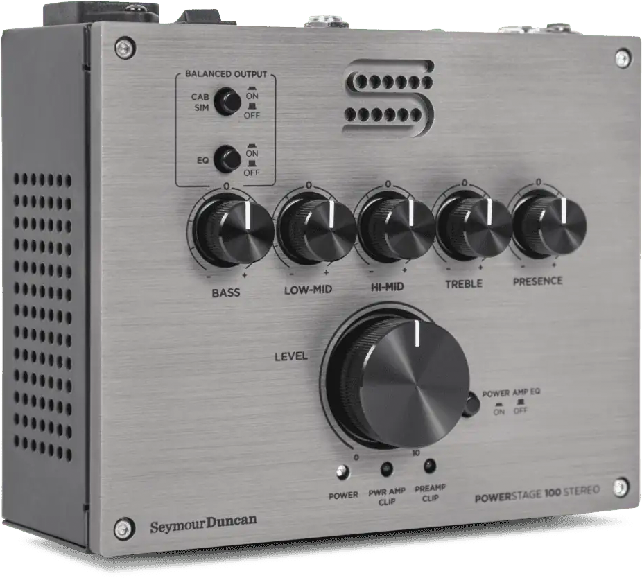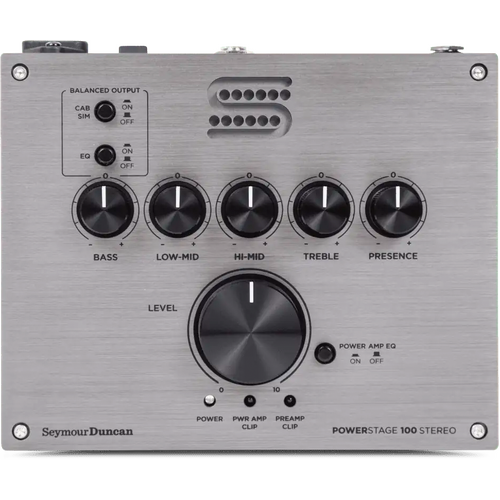 The PowerStage line of compact power amps provides high-headroom class-D amplification to guitarists looking to deliver the sound of their preamp, pedal chain, or amp modeler to the masses. The PowerStage 100 Stereo provides features demanded by the modern guitarist, including stereo inputs and outputs that each drive 100 watts of transparent sound to your cabinets. Perfect for amplifying the sound of modern modeling units to on-stage cabinets, the PS100 Stereo also offers an extended EQ section and balanced line outs with switchable analog cabinet simulation for more authentic projection through any sound system. The stereo sounds developed in your amp modeler, multi effects-unit, or preamp will be delivered with clarity through any pair of speakers, all in a package small enough to fit on your pedalboard.