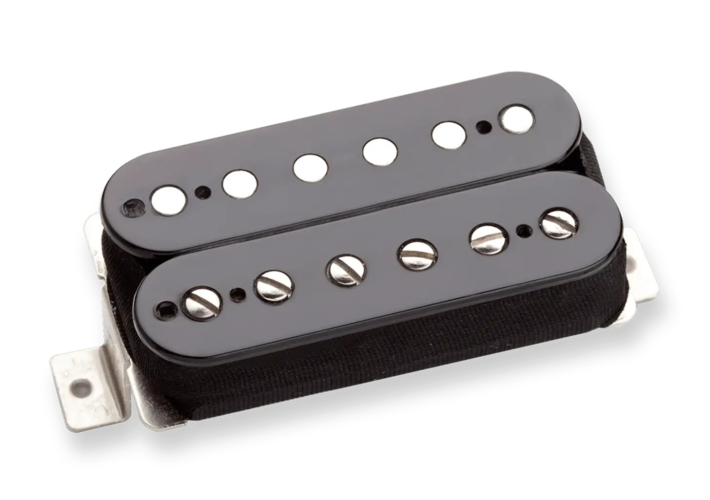Offered in 6-string standard humbucker and Trembucker spacings, the ’59 model features a variety of traditional vintage treatments, such as 42AWG plain enamel mag wire, long-legged nickel-silver bottom plate, vintage single-conductor braided push back lead wire, and no logo. If you opt for a four-conductor version for coil splitting, the ’59’s single coil mode is crystal clear. As with all of our P.A.F.-style pickups, the ’59 vintage output humbucker is wound on Seymour’s classic Leesona 102 pickup winding machine from the old Gibson factory in Kalamazoo, MI. Also available for neck and bridge in a passive mount 7-string configuration.